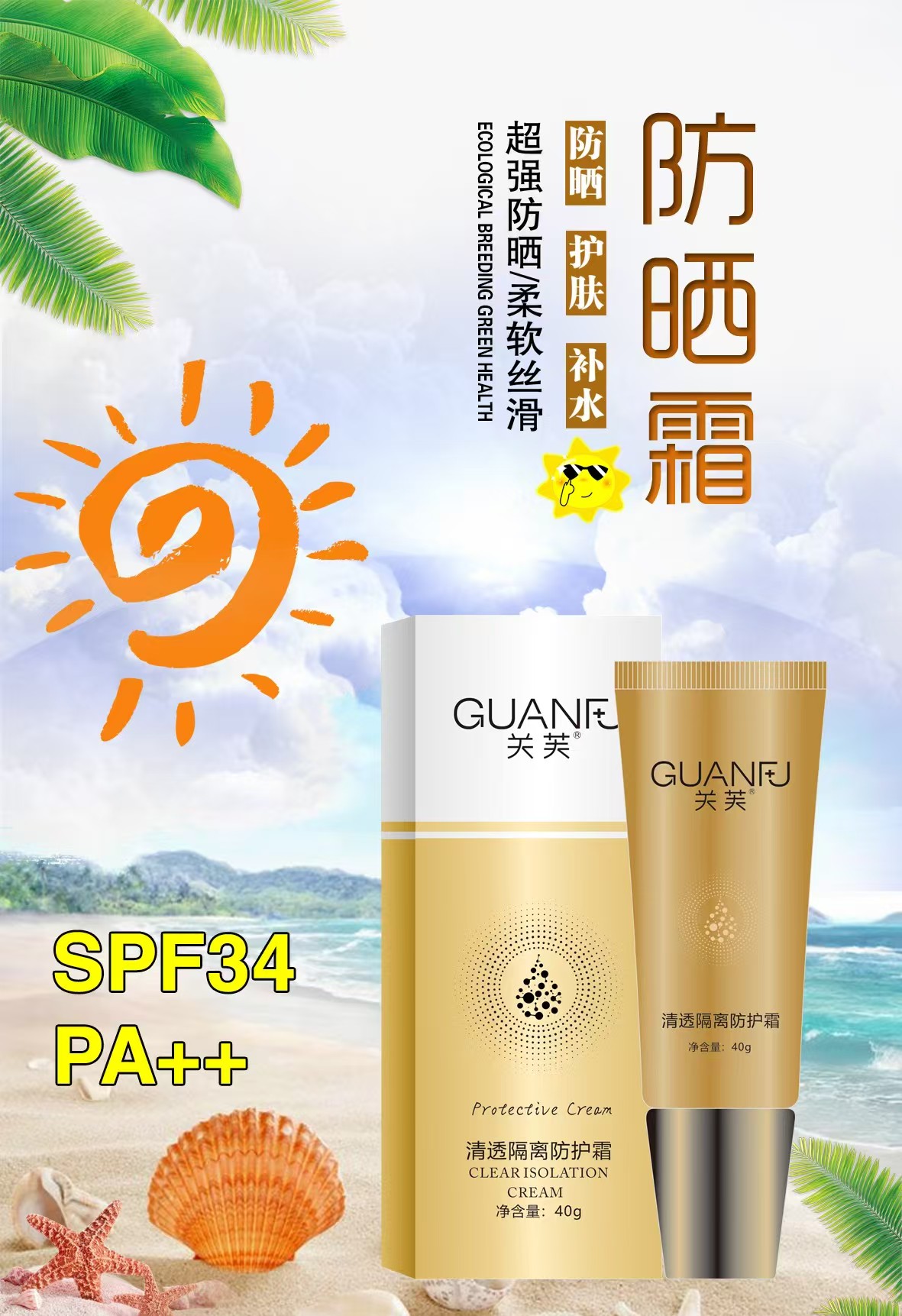 • 商品名称:关芙 清透隔离防护霜 净含量:40g PA++